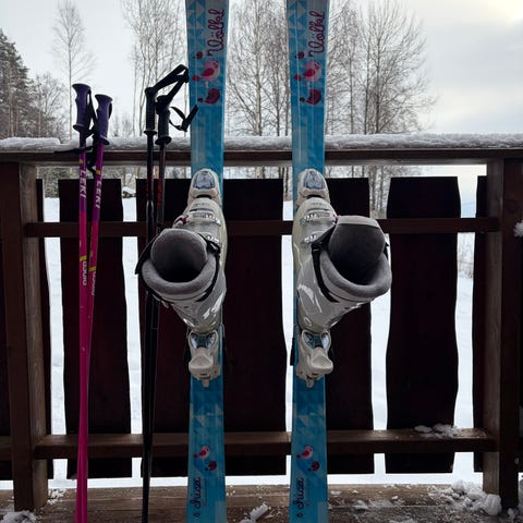 Perfekt for nybegynner gutt eller jente. Sko størrelse 24.0 (størrelse 38) ski lengde cirka 120 cm. Og staver lengde cirka 80 cm. Brukt av min datter to vintre. Lett å montere på større sko etterhvert.