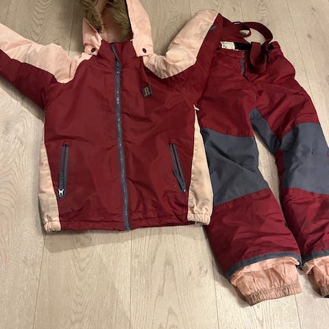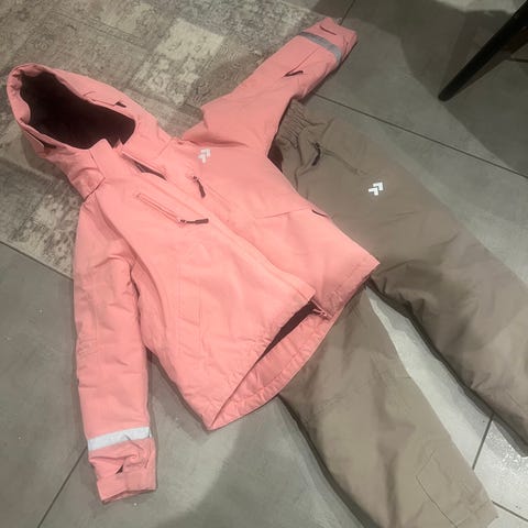Selger et pent brukt skisett til jente str 116. Kjøpt nytt til 800kr på Obs. Merke er «friends». Holder godt i både kulden og i vått vær.