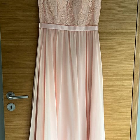 Nydelig lang lyserosa kjole fra Floyd selges kr 600/seriøse bud. Mangler liten knapp for å kneppe igjen bak øverst. Str 14.