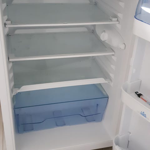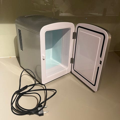 Day kjøleskap i kompakt bordmodell. Kjøleskapet har frontdør med håndtak og innvendig plass egnet for mindre mengder mat og drikke. Passer for bruk på kontor, båt, soverom, hybel eller andre steder der det er behov for et lite kjøleskap. Strømkabel følger med, og skapet kobles til vanlig stikkontakt. Farge: hvit.