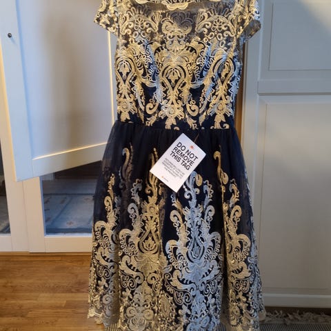 Veldig fin champagne farget ballkjole( finere i virkligheten enn på bildet) str , litt usikker men vil tro fra m til xl pga snøring selges 500kr/seriøse bud. Blitt brukt 1 gang. Finner desverre ikke snoren til å knytes bak men selges på feks garn/ sy butikker.