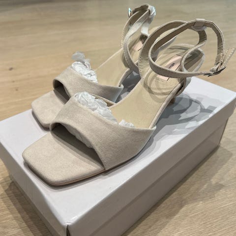 Ubrukte, veldig fine høye hæler i størrelse 37 fra Nelly i "semsket skinn" look.