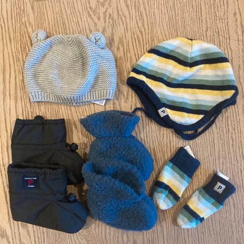 3 Lier og et par votter fra Reflex, Name it, Reima og «Marius» selges for 250kr.