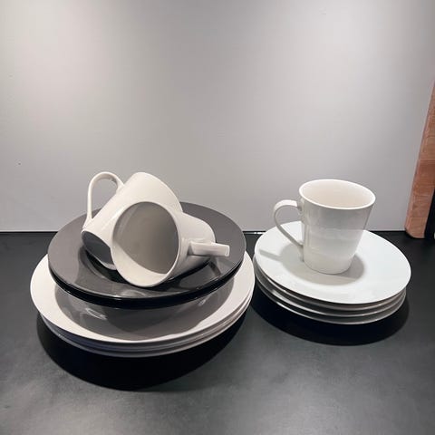 Tallerkner, asjetter (samme serie) , bestilk, kniver, sil, ostehøvel, drink sett og kaffekvern gis bort mot henting