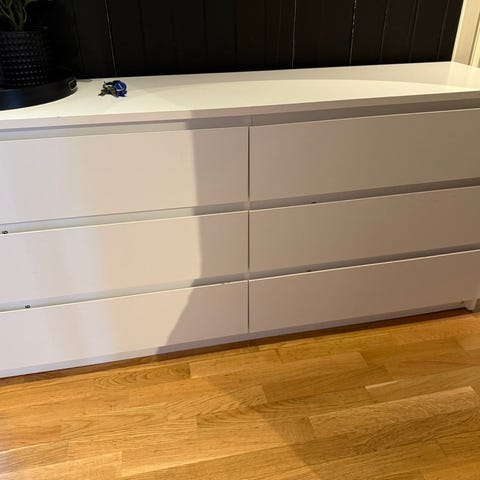 Godt brukt, kan trenge et strøk maling (se bilder) men ellers hel og fin. De originale knottene er byttet ut og stikker litt inn i skuffene (se bilde). Må hentes i Haugesund.