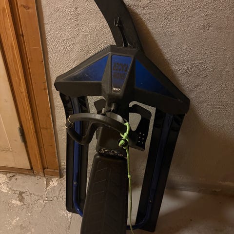 X Rider akebrett i svart farge. Modellen har tre meder og styre foran. Egnet for aking på snø for én person. Robust plastkonstruksjon med håndtak for styring og bremsing, avhengig av modellens utforming. Selges 300kr ferdig prutet. Stått i boden i mange år .