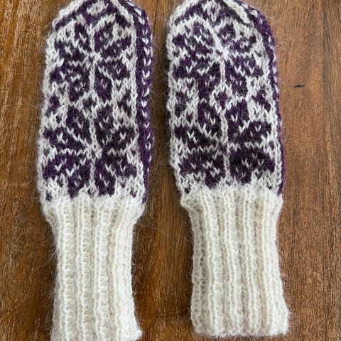Hjemme strikkede votter i ull str.6-8 år