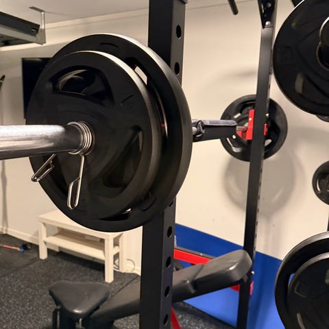 Perfekt komplett sett for hjemmetrening. Solid kvalitet og tar lite plass med stativ.