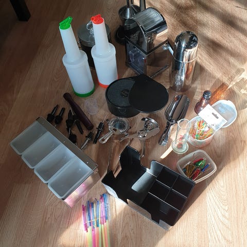 IKEA dekorasjonspakke interiør med ulike deler til lys og pynt. Pakken inneholder blant annet to metallholdere som kan brukes til telys eller små glass, en lysestake formet som en krabbe for tre telys, samt flere poser og bokser med dekorativt fyll som sand, små steiner og glassperler. Egnet til enkel borddekorasjon, lysoppsatser eller hobbyprosjekter i hjemmet.