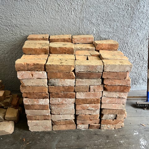 Murstein i rød teglstein. Egner seg til murerarbeid, reparasjon av eksisterende mur, små byggeprosjekter eller hageprosjekter som bedkanter og lignende.