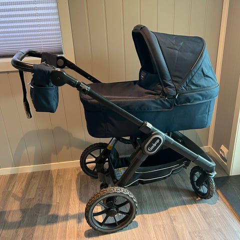 Det følger med både liggedel og sittedel som brukes om hverandre på samme understell, samt fottrekk til sittedelen. Vognen har store luftfylte hjul med terrengdekk som har lite slitasje, og gjør den behagelig å trille – også på litt ujevnt underlag.