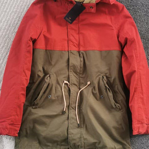 Scotch & Soda jakke for herre i størrelse M. Ytterstoff i svart polyester med hette og glidelås i front. Jakken har vattert innside i lilla og detaljer i grønt, samt innerlomme med glidelås. Ribbekanter nederst og på ermene gir en mer tettsittende avslutning. Egnet som ytterjakke i hverdagen og til fritidsbruk i kjøligere vær.