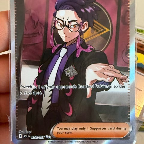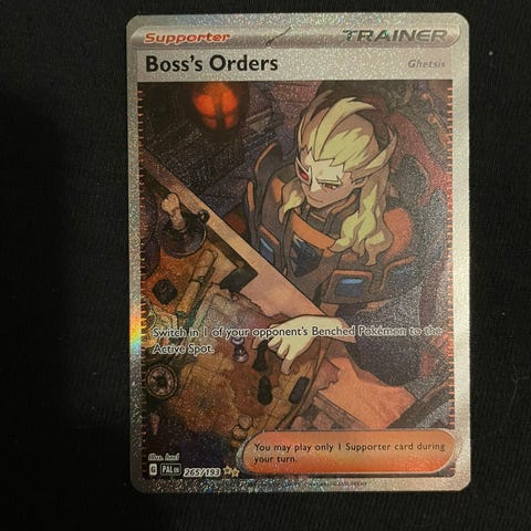 Pokémon Boss’s Orders trenerkort. Kortet viser en supporter-trener og er en del av Pokémon TCG Ascended Heroes. Egner seg til samling eller som spillkort i Pokémon TCG-dekk.
