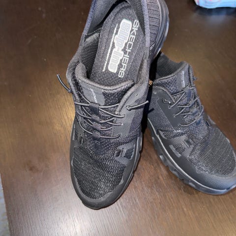 Skechers Air Cooled Arch Fit joggesko i størrelse 39. Skoene er i marineblå tekstil med syntetiske detaljer og lys mellomsåle. Modellen har Air Cooled Arch Fit-innersåle som gir støtte til fotbuen og ventilasjon. Yttersålen er i gummi med mønster for grep. Passer som hverdagssko eller til lett trening og turbruk.