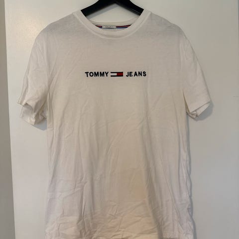 Calvin Klein T-skjorte for herre i størrelse M. T-skjorten er hvit og laget av bomull. Fronten har Calvin Klein-logo i flerfarget trykk, mens baksiden er ensfarget. Klassisk rund hals og korte ermer. Passer til hverdagsbruk og kan kombineres med jeans, shorts eller joggebukse.