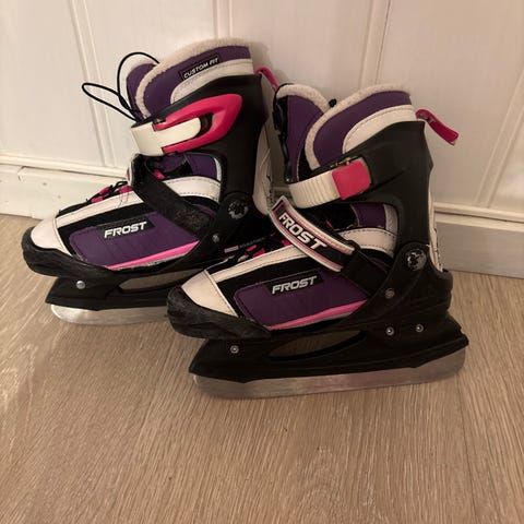Pent brukte Frost skøyter. Passer flere sesonger da de kan justeres fra 29 til 32. Behagelige å ha på.