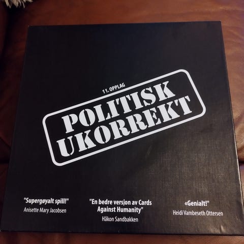 Politisk Ukorrekt selskapsspill er et kortbasert partyspill for flere deltakere. Spillet består av flere kortstokker med ulike farger, der spillerne kombinerer kort for å lage setninger og utsagn. Innholdet er laget for voksne spillere med sans for grov og direkte humor.