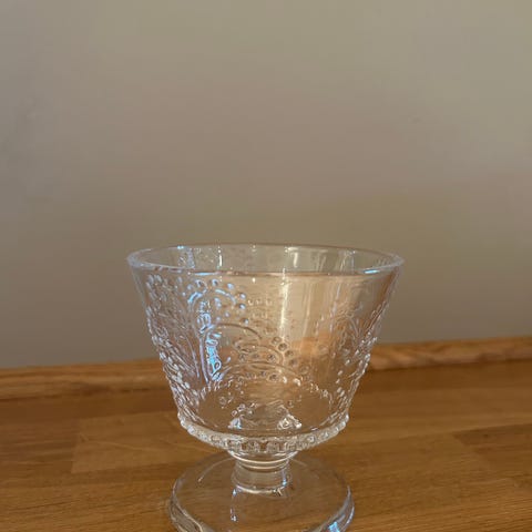 Iittala dessertskåler i glass i blå og grønn. 3blå og 2grønne. 250 kr pr stk.