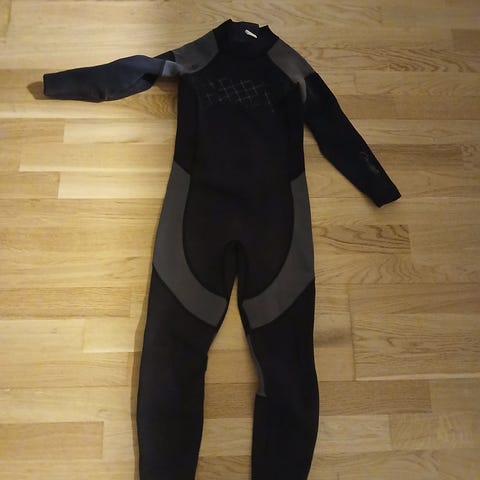 Helkropp våtdrakt i svart med grå felter på knær og hofter. Glidelås foran og lange ermer og ben. Egnet til bruk i vannaktiviteter som bading, surfing eller andre vannsportaktiviteter der det er behov for isolasjon og beskyttelse mot kaldt vann. Str 11-12 år.