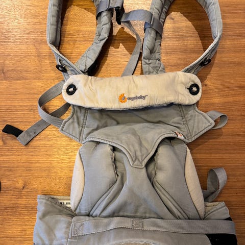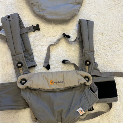 Ergobaby Original bæreselle i grå farge. Bæreselen har polstrede skulderstropper og bred hoftereim for jevn vektfordeling. Justerbare stropper og spenner gjør det mulig å tilpasse selen til den som bærer. Modellen er egnet til å bære baby/barn tett inntil kroppen. Stoffet er mykt og slitesterkt, og selen har støtte rundt rygg og hofter for barnet. Leveres med original eske som vist på bildet.