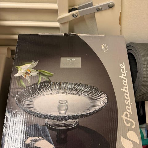Ubrukt Hadeland Glassverk Galakse kakefat med fot i klart glass. 320 mm.
