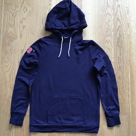 WoolLand hettegenser for barn i størrelse 152. Genseren er unisex og i mørkeblå farge. Materiale i merinoull. Modellen har hette med rutete fôr og snøring, samt kengurulomme foran. Ribbekanter nederst på ermer og i liv. Passer til hverdagsbruk og som et varmt lag i kjøligere vær.