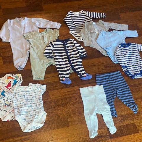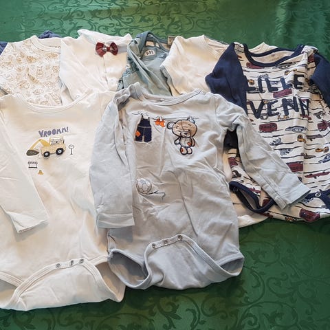9 stk bodyer str. 68 selges samlet for 200 kr. Det er brukt, men det er fortsatt mye bruk igjen. Merkene på bodyene er Kappahl, Cubus, H&M, Hust og Lindex. Stoffene er i bomull og elastan. Jeg kan gjerne sende, mot at kjøper betaler frakt.