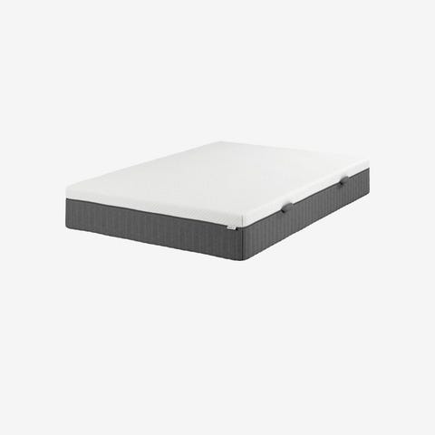 140x200 cm rammemadrass med overmadrass fra IKEA selges. Bein i eik på 20 cm. Pent brukt. Nypris totalt ca. 5000,-.