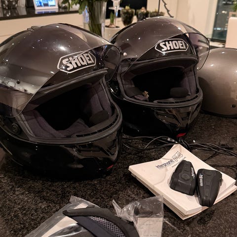 Shoei Neotec 2 MC-hjelm med Harman Kardon SENA SRL-Mesh intercomsystem.