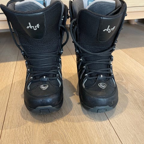 K2 Darko snowboardstøvler i svart farge. Størrelse 24 cm / EU 38 / US 6, merket som damemodell. Støvlene har snøresystem med justering på skaftet og forsterkninger rundt tå og hæl. Passer til bruk i alpinanlegg og snowboardkjøring der det trengs stabile og komfortable støvler med god støtte rundt ankel og legg.