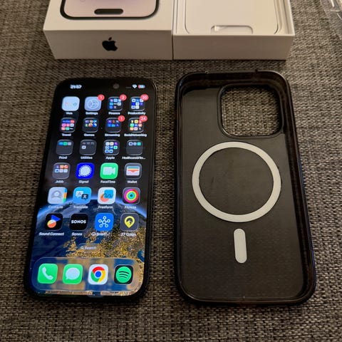 ✨ Selger iPhone 14 Pro 128 GB i hvit farge. Telefonen fungerer som den skal og er pent brukt. Ingen riper i det hele tatt — fremstår som ny.