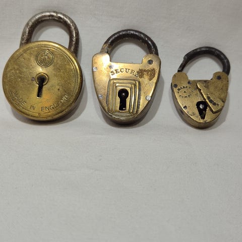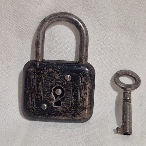 En noe mindre, og fullt fungerende lås med en medfølgende original nøkkel.