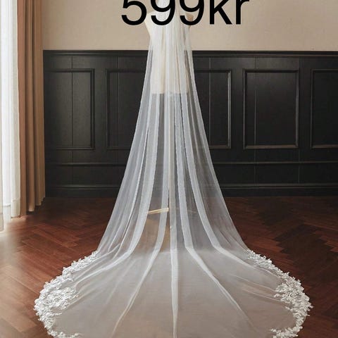 Selger et vakkert brudeslør med blonder i hvitt i lengde ca 3 m. Helt nytt og selges for 600kr. Festes med kam til håret. Sløret er tidløst og elegant, og passer mange ulike brudekjoler. Sender gjerne!