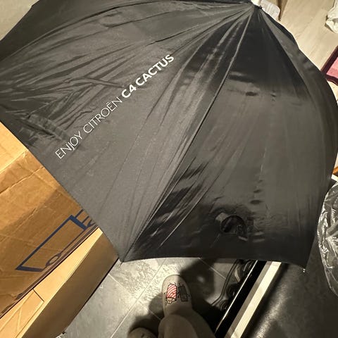 Original MINI sammenleggbar paraply i svart. Paraplyen har et MINI-bilmønster i duken og et håndtak utformet som en girkule med MINI-logo. Praktisk størrelse som kan legges sammen og oppbevares i veske, sekk eller bil.