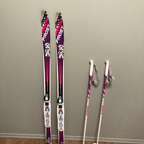 Pent brukte Frost langrennski med Rottefella-bindinger selges. Staver medfølger. Må hentes.
