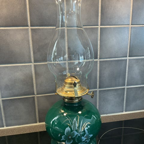 Lampen er 37cm. Kommer i originalesken. Følger ikke med olje.