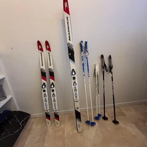 Madshus langrennsski med tilhørende staver for barn. Skiene har klassisk spenn og er utstyrt med integrerte bindinger. Staver med plasttrinse og håndtak tilpasset barnehender. Egner seg til vanlig langrenn på preparerte løyper for barn som skal lære og øve på klassisk langrennsteknikk.