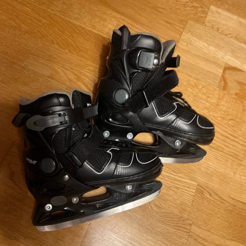 X-Ride PW-218 skøyter for barn. Justerbar for størrelse 33-36. Skøytene er svarte med justerbare spenner og borrelås for god tilpasning rundt foten. Pent brukt