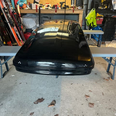 Skiboks fra skiguard 860 med takstativ fra Thule
