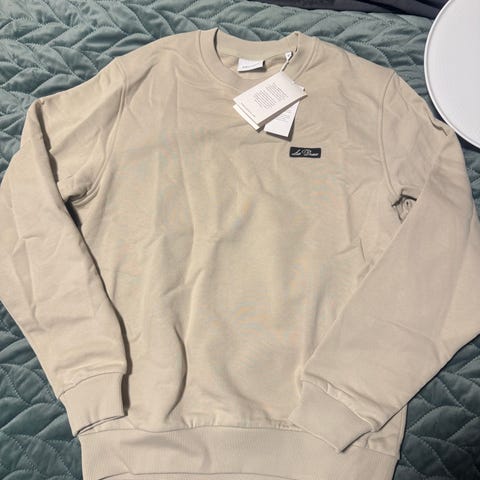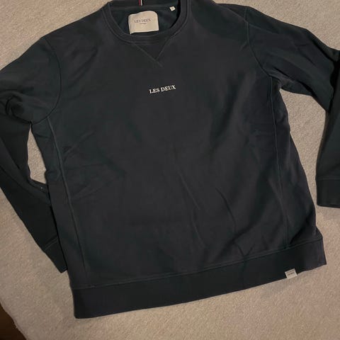 Les Deux genser for herre i størrelse M. Genseren er svart og laget av bomull. Klassisk rund hals med ribbestrikkede kanter i hals, ermer og nederkant. Diskré Les Deux-logo på brystet. Passer til hverdagsbruk og kan kombineres med både jeans og chinos.