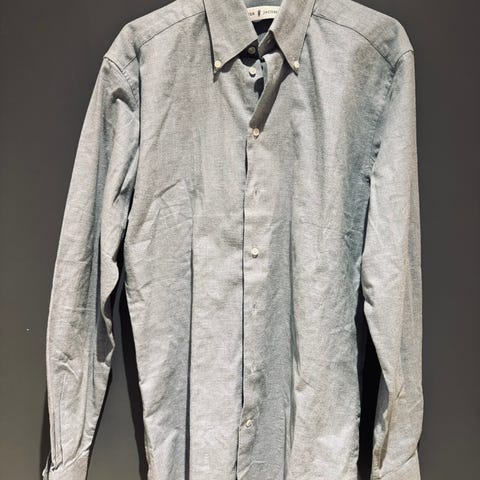 Pen skjorte fra Ferner Jacobsen. Tidligere eier har brodert initialene K.N. Lar seg sannsynligvis lett fjerne.