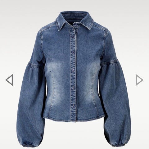 Floyd Mia skjorte for dame i størrelse S. Skjorten er i blå denim og har korte til 3/4-lange ermer med lett puff. Den har ståkrage og skjult knappestolpe foran. Passer til hverdagsbruk og kan kombineres med både bukser og skjørt.