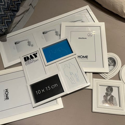 14 stk bilderammer i ulike størrelser. Pent brukt, men noen bruksmerker kan det være.