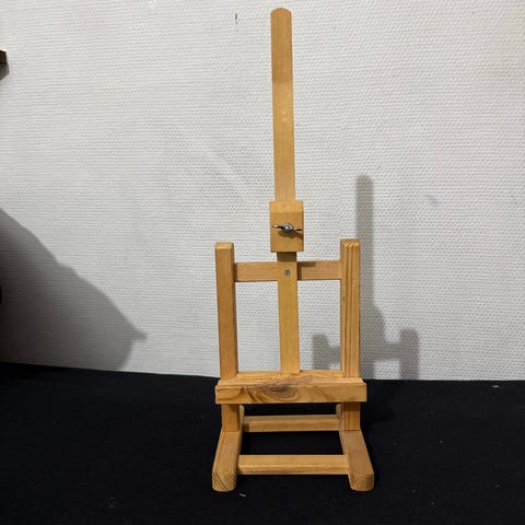 Det er en liten bordstaffeli / malestaffeli i bøk.