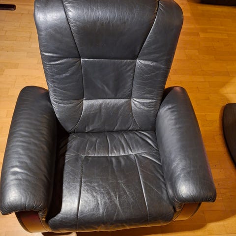 Hvilestol i skinn selges. Meget pent brukt, ser ut som ny.