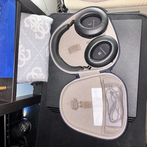 Sennheiser trådløse hodetelefoner i svart farge. Over-ear-modell med polstret hodebøyle og lukkede øreklokker. Leveres med hard etui, USB-kabel og flyadapter som vist på bildene. Egner seg til bruk med mobil, PC og andre enheter som støtter tilkobling via kabel eller trådløst, avhengig av modellens funksjoner. Kunn brukt et få ganger. Er kjøpt mars 2024.
