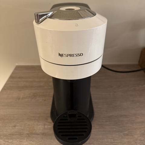 Nespresso Vertuo Next kapselmaskin med stort utvalg av kaffevariasjoner og fem koppstørrelser, alt med kun et knappetrykk.