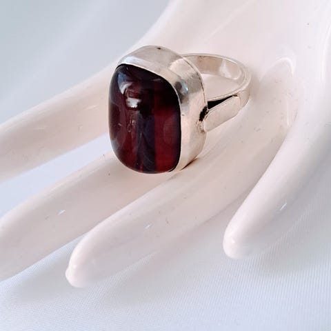 Sølvring med vakker stein til salgs. Jeg har strørrelse 59/60 og ringen passer fint. 925 sølv.