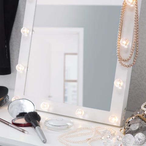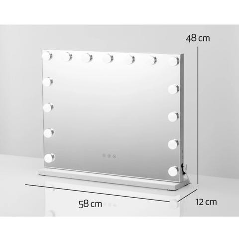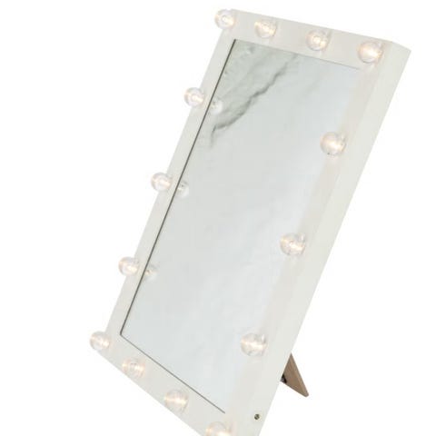 Selger denne fine- stødige sminkespeilen med sterkt lys på, kan justeres med farger gul/nøytral/hvit og er dimmbar.