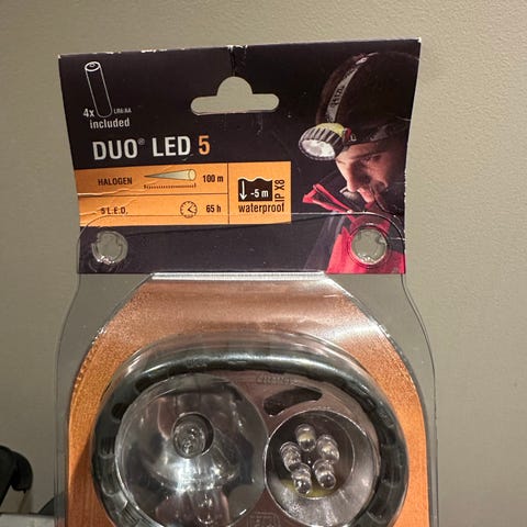 Ny/ubrukt Petzl Duo Led 5 hodelykt uten embalasje selges rimelig. Bruksanvisning følger med. Lagd for røffe forhold som grottevandring. Støvtett og vanntett intill 5 meter (IPX8). Uten batterier.